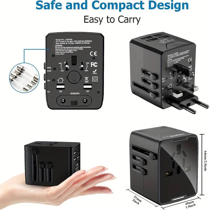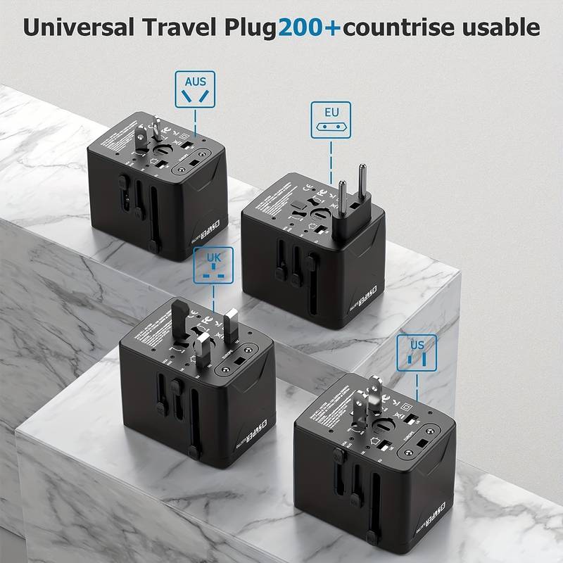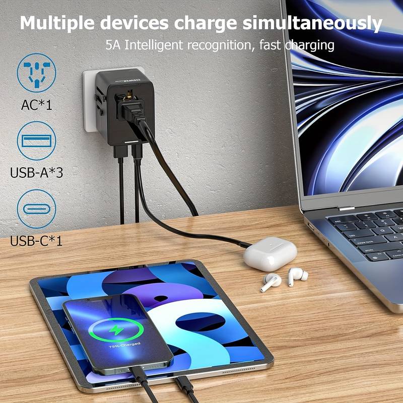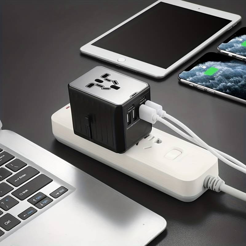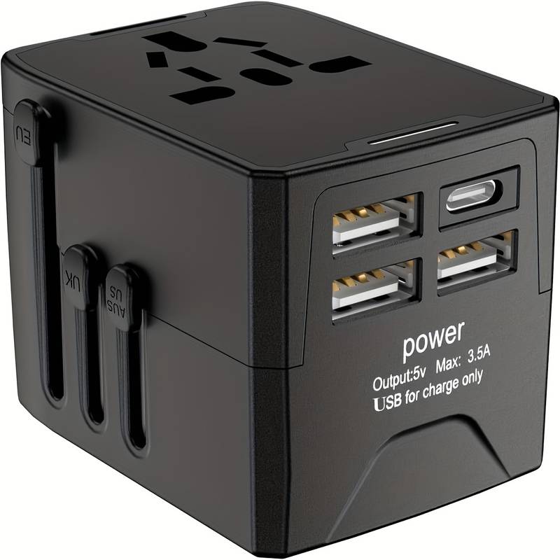 1pc Adattatore Universale Per Viaggi, Adattatore Per Viaggi Internazionali, Spina Per Viaggi Europei, Corrente Di Presa 6A, Uscita Intelligente USB Da 3,5A, 3USB A + Tipo C Per USA EU UK AUS.