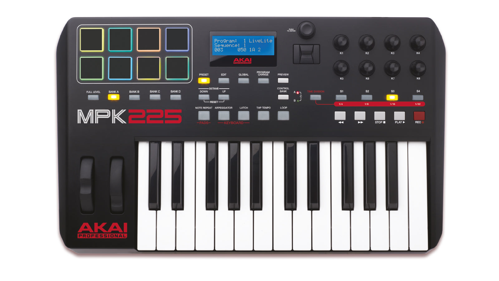 MPK225 è armato con il potente software di produzione - Ableton Live Lite e MPC Essentials - per la creazione di musica fuori dagli schemi. Ableton Live Lite è un ambiente audio/MIDI fluido che permette a musicisti e produttori di comporre, registrare, remixare, improvvisare ed editare spontaneamente idee musicali. MPC Essentials, un software di produzione groove/beat e di sample-triggering, può integrarsi direttamente in qualsiasi DAW, come Ableton Live Lite, o funzionare in modalità standalone. Inoltre, estende la potenza di MPK225 aggiungendo fino a 8 banchi di pad e 4 campioni e inserendo effetti per pad.