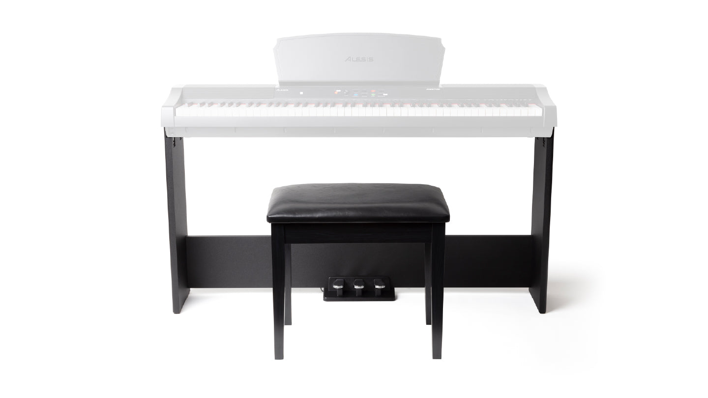 L'AHB-1 di Alesis è un set di successo composto da un supporto per pianoforte e da una panca. Adattato con precisione alle dimensioni dei pianoforti digitali Alesis Prestige, Prestige Artist e Recital Grand, il supporto per pianoforte offre al pianoforte digitale una presa sicura e all'esecutore una posizione confortevole sullo strumento. Il design sottile permette allo strumento di inserirsi discretamente nel salotto senza apparire ingombrante. I tre pedali per sustain, soft e sostenuto sono saldamente integrati nel supporto. Grazie a questi pedali dalla corsa fluida, è possibile suonare in modo accentuato e avere maggiori possibilità espressive. Anche la panca imbottita contribuisce a una comoda posizione di seduta sullo strumento e completa con stile l'impressione generale. Il supporto e la panca possono essere assemblati in pochi minuti senza alcuna competenza tecnica. Tutto ciò che serve è un cacciavite ed eventualmente una seconda persona che aiuti nel montaggio.