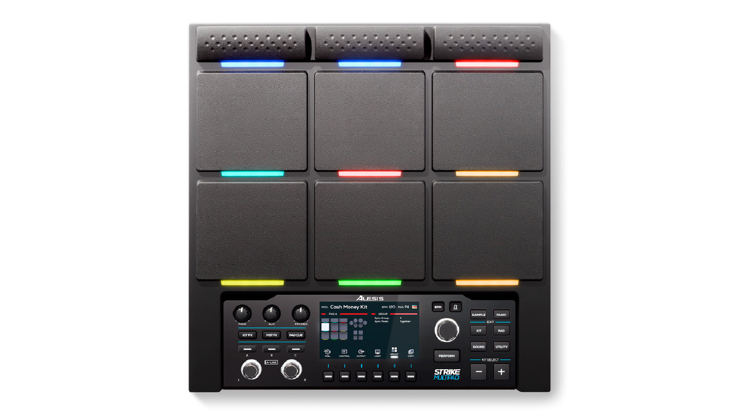 Alesis ha progettato lo Strike MultiPad per soddisfare le esigenze del batterista, del percussionista e del live performer, affinché possano campionare, editare e loopare in modo estremamente intuitivo e immediato. Strike MultiPad offre una dotazione sonora senza eguali, con oltre 7000 suoni (6GB) pronti all'uso, 32GB di memoria, ti permette di registrare i tuoi sample da qualsiasi sorgente sonora (smartphone, microfono, computer) e di caricare campioni in formato .WAV da chiavette USB. I 9 pad percussivi sensibili alla dinamica (velocity) sono dotati di una retroilluminazione RGB configurabile a piacimento dall'utente a seconda delle esigenze esecutive. Alla base dello Strike MultiPad troviamo uno schermo a colori da 4.3" per la visualizzazione e quindi l'ottimizzazione di tutti i processi di modifica dei kit e dei suoni. L'Alesis Strike MultiPad si integra alla perfezione in qualsiasi setup, grazie ad una dotazione completa di ingressi e uscite. Potrai indirizzare qualsiasi suono e il metronomo integrato ad una delle quattro uscite audio formato jack da 1/4", all'uscita cuffia jack da 1/4" o a quella mini-jack (TRS da 1/8"). Grazie alle tradizionali porte MIDI Din IN e Out e al MIDI via USB potrai connetterti, controllare e integrare qualsiasi hardware MIDI compatibile. Le sorgenti audio esterne sono collegabili agli ingressi jack bilanciati (TRS) da 1/4" per consentirti il campionamento diretto all'interno del modulo. La presenza di ingressi trigger garantisce l'espansibilità del kit e l'integrazione di pad addizionali: 1 a zona singola e 2 a doppia zona. Sono inoltre presenti ingressi dedicati rispettivamente a pedali hit-hat (TRS) e footswitch.
