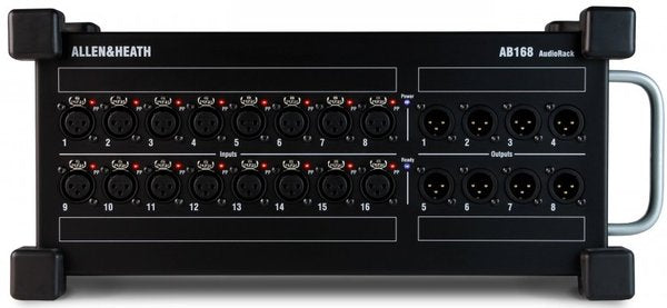 La Stage Box AB168 di Allen&Heath ha 16 ingressi e 8 uscite. L'AB168 è compatibile con tutti i mixer digitali delle serie QU e GLD di Allen&Heath.
