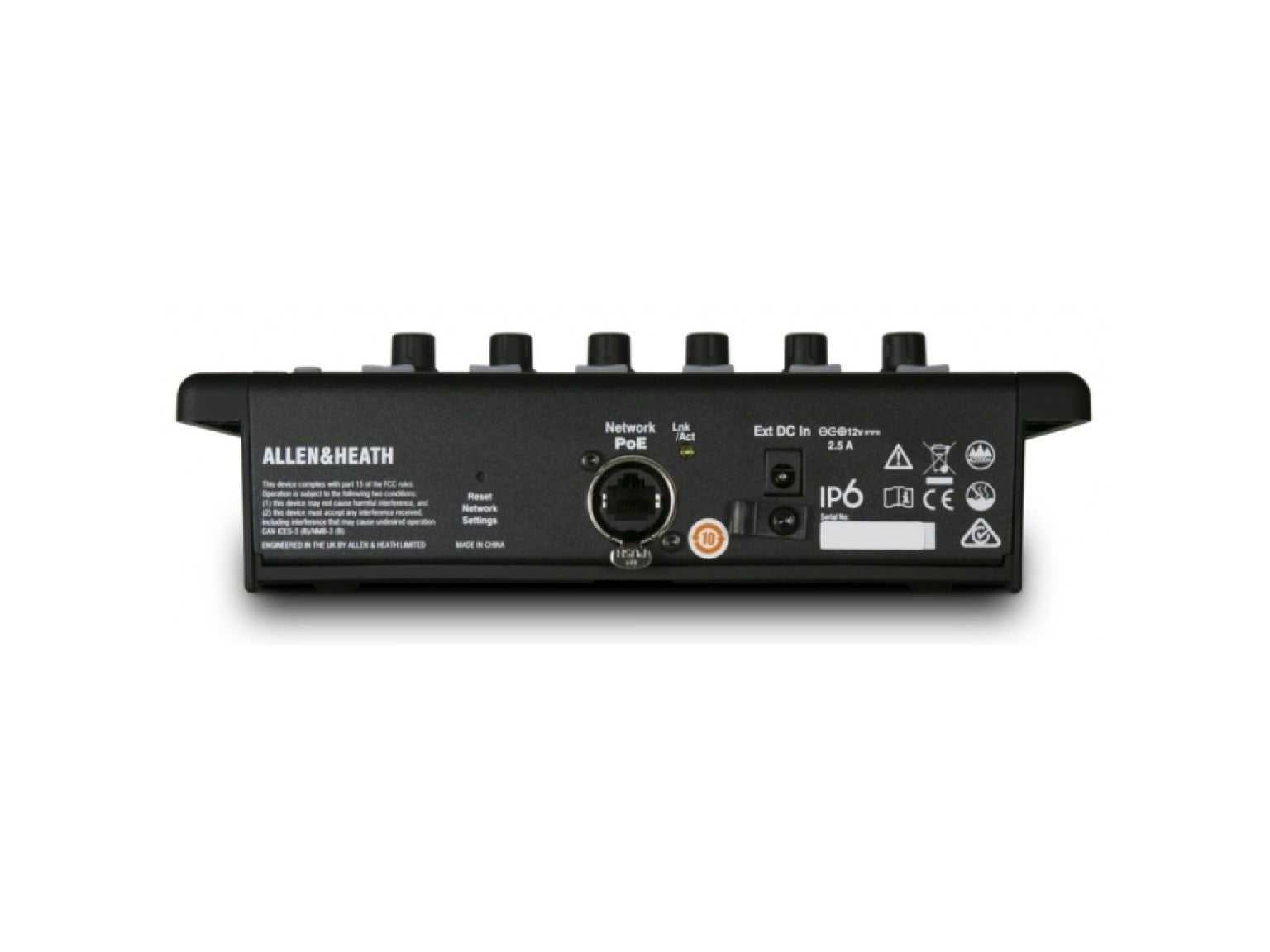 alimentato a PoE o a corrente continua e può essere collegato alla rete IT dell'edificio. 6 controller rotanti possono essere impostati su un intervallo e possono controllare qualsiasi ingresso o uscita di un sistema dLive.