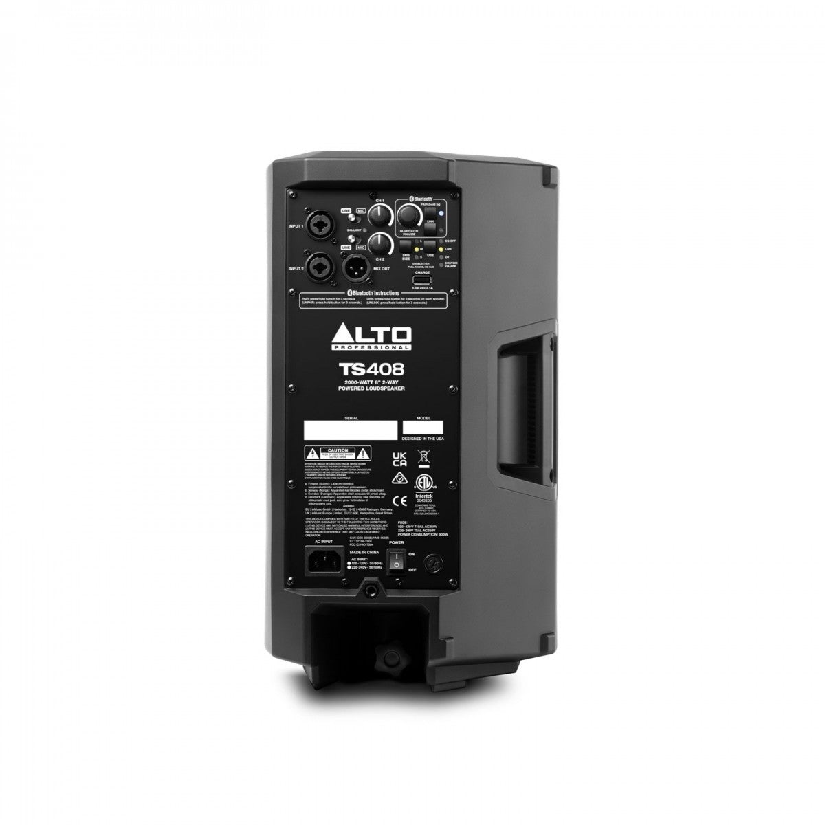 Il TS408 è dotato di un mixer integrato a 3 canali con due ingressi XLR/TRS combinati e un canale Bluetooth dedicato per lo streaming wireless. Per ottimizzare ulteriormente il suono, il diffusore dispone di tre modalità DSP preimpostate "Speaker Use", con un controllo più approfondito dell'equalizzatore disponibile tramite l'app. La connettività Bluetooth può essere utilizzata anche per l'accoppiamento con un altro diffusore, consentendo un potente suono stereo senza fili.