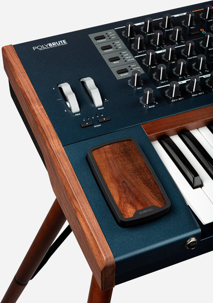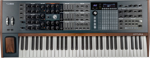 | Arturia PolyBrute è il frutto di anni di ricerca e sviluppo che hanno portato alla realizzazione di un sintetizzatore unico che combina al meglio la potenza di un polysynth e le capacita espressive dei suoi controlli. Con due oscillatori, sei voci di polifonia, un filtro Steiner-Parker e un filtro Ladder 24 dB per ottava a disposizione, PolyBrute trae ispirazione dall'ormai tradizionale linea Brute della casa francese definendo un nuovo standard per quello che rappresenta ora la nuova 'ammiraglia' dei sintetizzatori Arturia. Il synth polifonico analogico di Arturia presenta alcune caratteristiche davvero importanti: la modalità "Dual State" che consente nuove possibilità creative davvero interessanti, il touchpad "Morphée" che punta tutto sull'espressività e le funzionalità di morphing che consentono di creare movimento da un suono all'altro nello stesso preset. PolyBrute integra anche effetti digitali di livello assoluto, una matrice di modulazione multifunzione e tre LFO. Ognuno degli oltre 350 preset contiene due parti che possono essere miscelate e trasformate, modificando contemporaneamente e in modo fluido ogni parametro. PolyBrute dispone inoltre di un intuitivo Motion Recorder che consente di registrare qualsiasi modifica o tocco, e di riattivarli quando si desidera. Dalla sua tastiera, al ribbon controller, PolyBrute è stato progettato per offrire agli amanti dei synth lo strumento più espressivo possibile. Il touchpad "Morphée" combina un sensore capacitivo e un sensore di movimento XYZ, consentendo di utilizzare ogni suono creato per inviare segnali diversi, ciascuno dei quali può essere assegnato a qualsiasi parametro si desideri.PolyBrute offre ai musicisti l'accesso a un'esperienza di sintesi polifonica senza tempo, suscitando la stessa magia e creatività degli strumenti iconici del passato, con una serie di funzionalità e un potenziale musicale totalmente moderni. Ciascun preset presenta due differenti stati e la trasformazione dall'uno all'altro porta una nuova dimensione al sound designer moderno. Questo consente di sperimentare, esplorare, trasformare ed eseguire performance con dei suoni totalmente nuovi, unici e suggestivi. L'interfaccia utente è dotata di parametri e controlli intuitivi. La matrice di modulazione offre 32 destinazioni personalizzabili per ciascuna patch. La matrice di PolyBrute può operare in svariate modalità, offrendo un controllo e una profondità senza pari per la creazione di suoni unici. Innanzitutto, la modalità Preset consente di selezionare una qualsiasi delle 768 posizioni preset sul synth. La modalità Modulation offre la possibilità di scorrere tra quattro pagine di assegnazioni della modulazione. Scegliete lo slot di modulazione e toccate il parametro che si desidera modulare: il tutto in maniera estremamente facile e intuitiva. Il software PolyBrute Editor consente di collegarsi direttamente al computer per controllare o modificare i parametri in tempo reale. Arturia realizza potenti sintetizzatori hardware ma ha una reputazione altrettanto eccellente in materia di software. In quest'ottica, hanno portato in PolyBrute alcuni dei loro effetti digitali più popolari direttamente dal sintetizzatore software Pigments. L'unità ha una qualità di manifattura eccezionale grazie a fasi di progettazione e costruzione lunghe e minuziose. Dal preciso schermo OLED alla tastiera Pro Feel, dagli intarsi in legno alla custodia in alluminio, PolyBrute è uno strumento destinato a restare a lungo nel tempo e a diventare in breve tempo un autentico classico. |