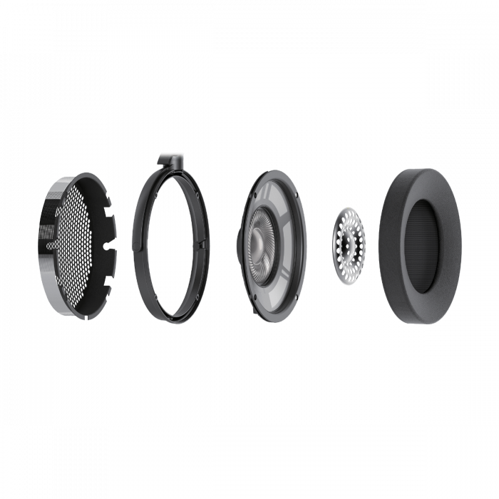 Il design dell'unità driver è una costruzione integrata. Diaframma, bobina mobile, baffle e magnete sono riuniti in un'unica unità per ridurre le vibrazioni indesiderate e per risparmiare il peso inutile derivante dalla rimozione dei morsetti a vite. Realizzato in PPS (solfuro di polipropilene) / fibra di vetro, il deflettore è altamente rigido per garantire un movimento stabile del diaframma.