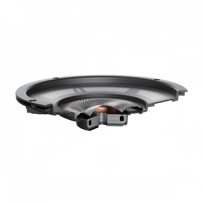 L'unità driver è collocata in una posizione ottimale all'interno dell'alloggiamento per migliorare l'efficienza del flusso d'aria, contribuendo a una riproduzione altamente trasparente delle frequenze medie e alte e a un suono dei bassi ricco e preciso.