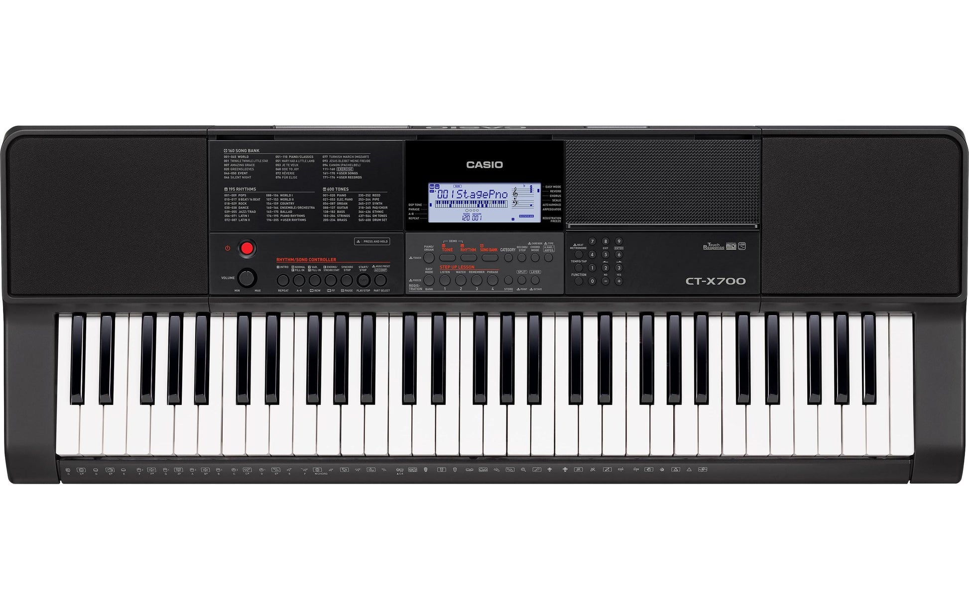 | Il Casio CT-X700 è la scelta giusta per i principianti ed il suo straordinario suono lo rende un must per i tastieristi di qualsiasi livello che necessitano di uno strumento portatile. Ciò che distingue veramente il CT-X700 dalle altre tastiere portatili è il suo cuore: la potente sorgente sonora AiX. Questa tecnologia fa sembrare il CT-X700 una tastiera che costa centinaia, se non migliaia di euro. Scegli tra 600 suoni utilizzando il pulsante Category e in ciascuna categoria troverai un'incredibile varietà di strumenti realistici che vanno ben oltre le tue aspettative. La convenienza non ha mai suonato così bene. Suona un pianoforte a coda e ascoltane uno da 9-piedi meticolosamente registrato in una sala da concerto virtuale. Suona un piano elettrico e ascolta phaser vintage e modelli di amplificatori che ti riportano indietro nel tempo. Suona un flauto, una tromba o un sassofono e ascolta il respiro e il vibrato naturali. Suona un synth e aggiungi un arpeggiatore ed una parte di batteria, e scrivi il prossimo successo dance. Con le centinaia di Rhythm incorporati, avrai sempre una band pronta a suonare. La varietà di Rhythm abbraccia il mondo come la storia della musica popolare. Troverai i vecchi successi e le hit delle classifiche, tutti suonati con strumenti incredibilmente realistici che suonano meglio che mai. I drum kit si animano con autentiche batterie acustiche, suoni vintage di drum machine e un'enorme collezione di strumenti a percussione ed effetti sonori. Cattura rapidamente la tua ispirazione con il registratore a sei tracce o goditi una libreria di 100 brani incorporati. Utilizza il sistema Step-Up Lesson per apprendere facilmente le song, con il display che mostra diteggiatura e notazione appropriate. La porta USB-MIDI si collega a qualsiasi dispositivo Mac, PC, Android o iOS senza la necessità di driver o installazioni. Il leggio incluso è progettato per supportare i tablet e c'è anche uno ripiano per smartphone incorporato per contenere il dispositivo mentre usi il Casio CT-X700 con le tue app di musica preferite. |