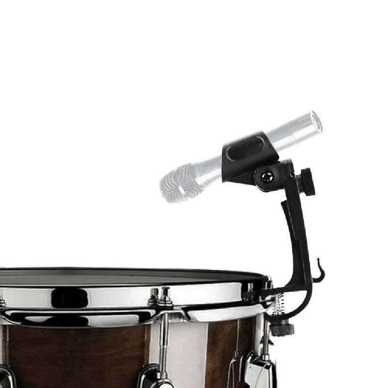 Il supporto per morsetto per microfono per batteria può essere facilmente agganciato al supporto per microfono per la maggior parte degli strumenti a percussione e per bordo batteria.