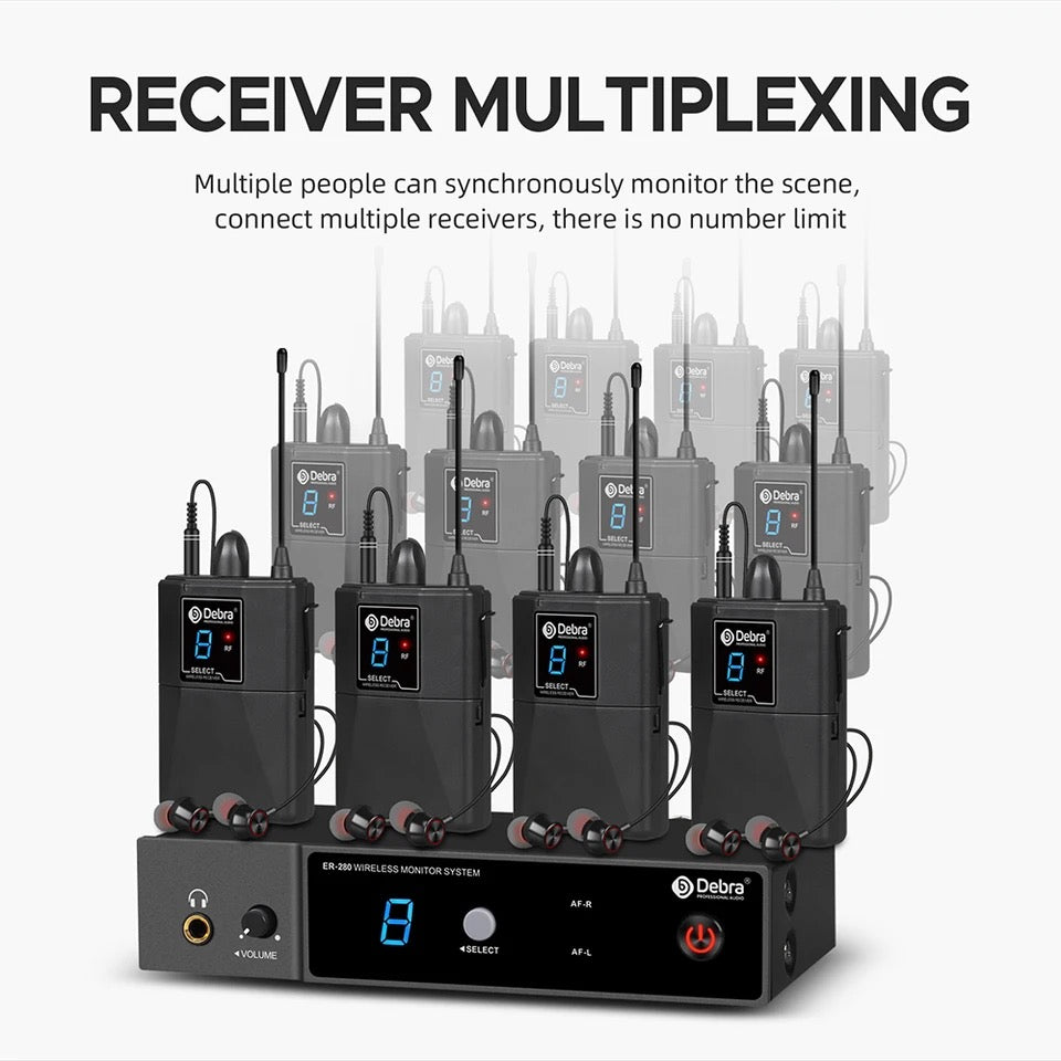 Debra ER-280 Single Channel UHF In Ear Monitor sistema Wireless con trasmettitore multiplo per piccoli concerti e Home Theater.
