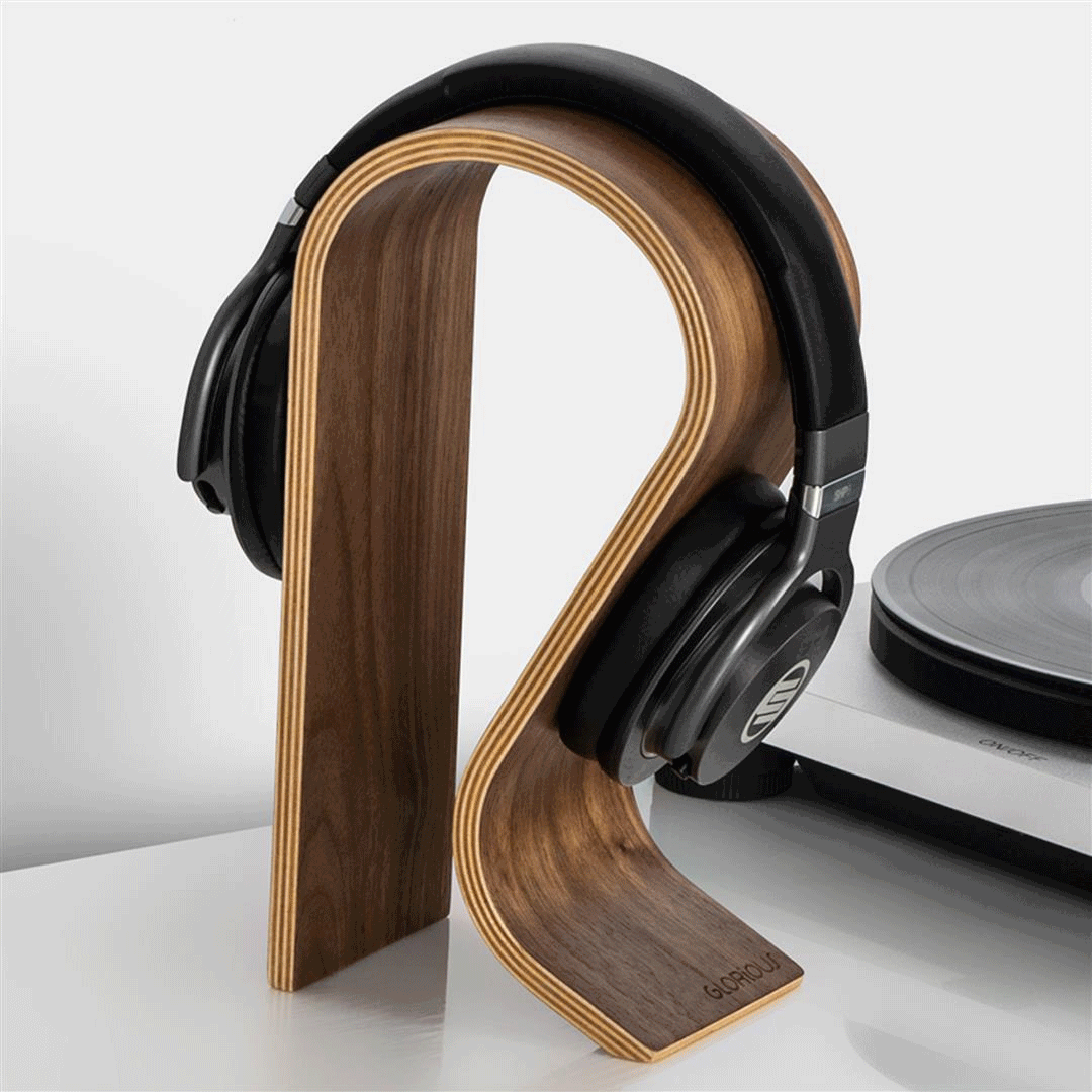 Supporto per cuffie di alta qualità realizzato in legno con finitura in noce