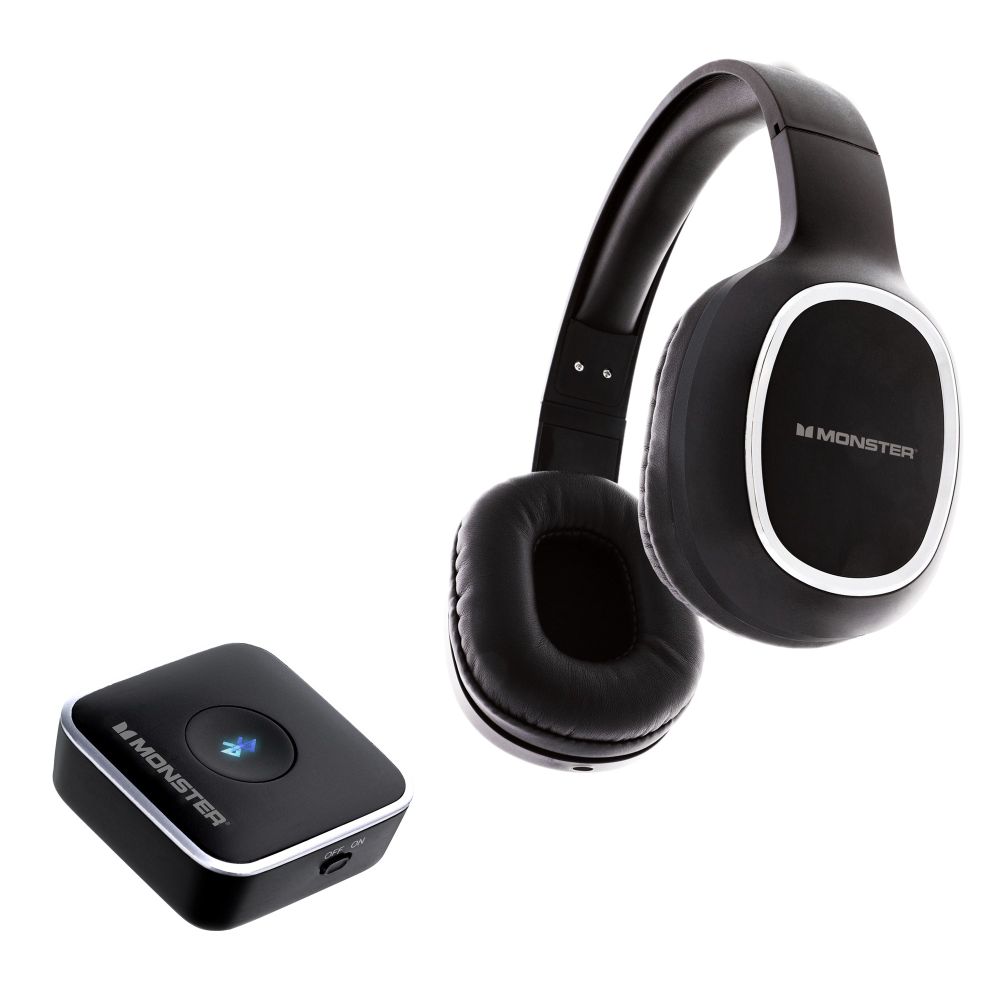 Monster Wireless TV-Headphone Kit, trasmettitore e cuffie. Collegare all'uscita cuffie del televisore e iniziare l'ascolto.