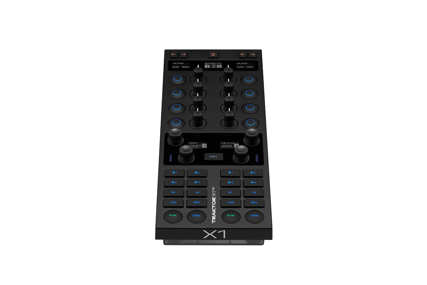 Rimanete nel momento con il Native Instruments Traktor X1 MK3. Con i suoi cinque display OLED, potete tenere gli occhi sull'apparecchio e non sul portatile. Questi display forniscono informazioni essenziali come il tempo rimanente, il nome della traccia, gli effetti selezionati e i parametri degli effetti. In questo modo potrete concentrarvi sulla vostra performance e non perdere mai un colpo.