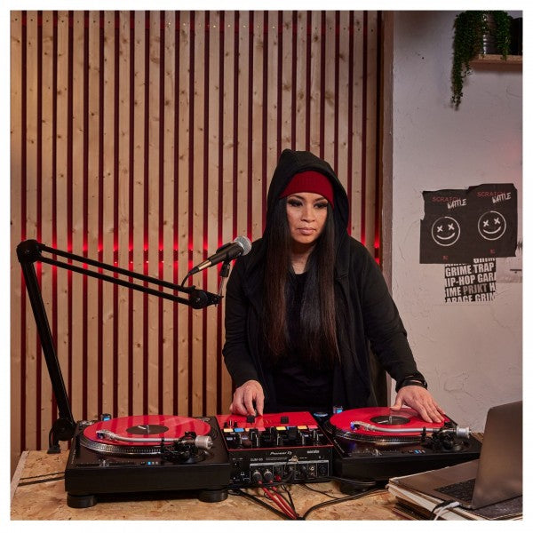 - Mixer DJ a due canali in stile battle, ideale per lo scratching