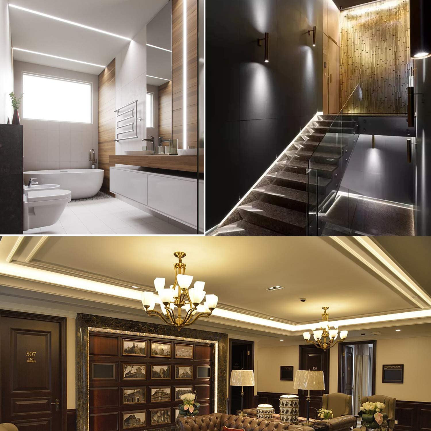 - 【Protezione perfetta per strisce LED】Il profilo in alluminio è un solido canale in alluminio estruso a forma di V per una migliore dissipazione del calore, ma protegge anche i LED dal contatto con la polvere. È realizzato in alluminio anodizzato, ha una migliore dissipazione del calore e può passare la striscia luminosa a LED si raffredda, che prolunga la durata della striscia luminosa a LED.