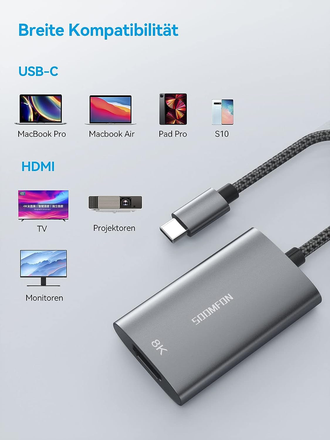 SOOMFON 8K USB C HDMI Adapter Thunderbolt 3/4 to HDMI Adapter