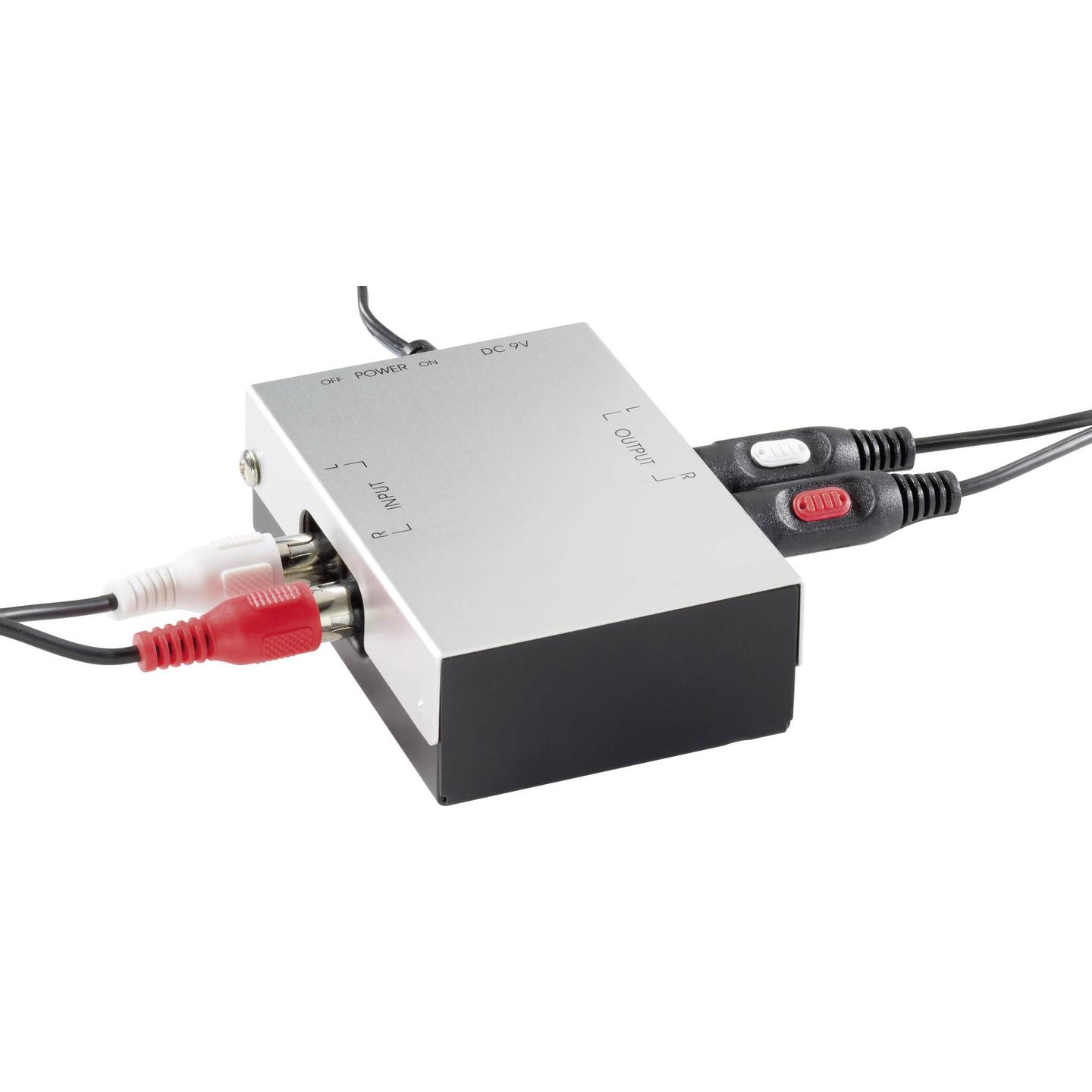 SpeaKa Preamplificatore fono professionale Amplifica ed equalizza i segnali dei giradischi Per il collegamento dei giradischi agli ingressi line/aux/MD/CD Equalizzazione RIAA standard Può essere alimentato da una batteria da 9V