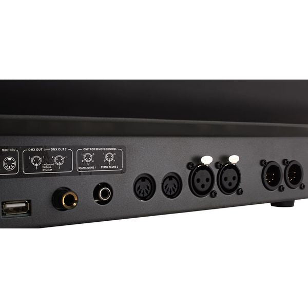 - 484 canali DMX (incluso il canale 481 per la macchina della nebbia DMX e i canali 483-484 per una strobo DMX)