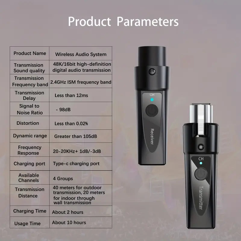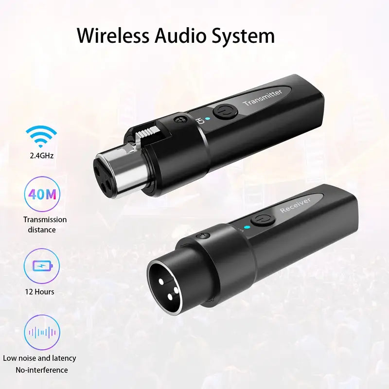 Trasmettitore di microfono wireless XLR, sistema wireless di microfono 2.4Ghz, adattatore di microfono wireless ricaricabile per mixer per microfono dinamico