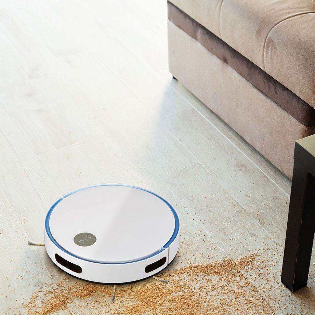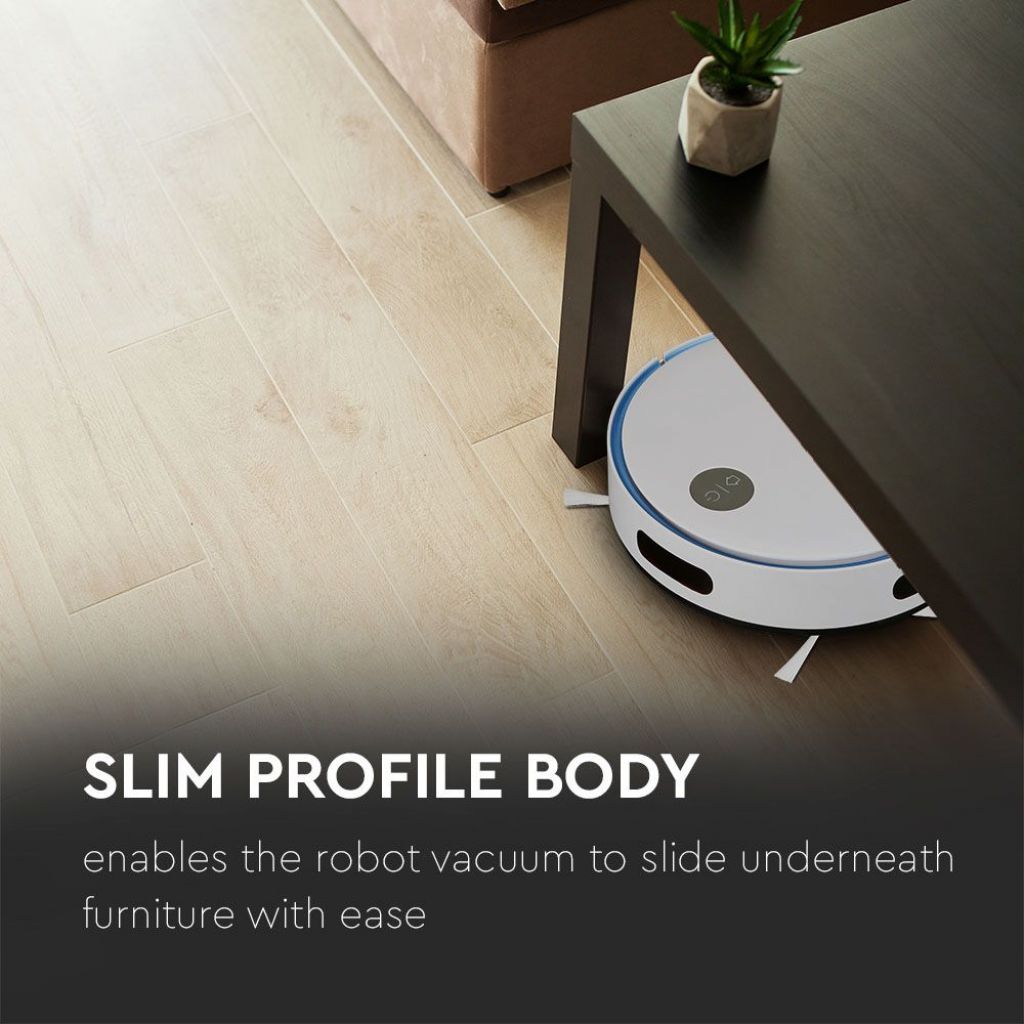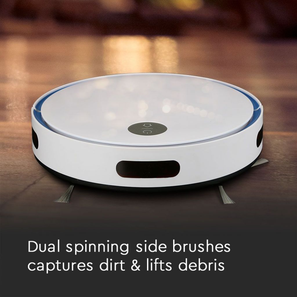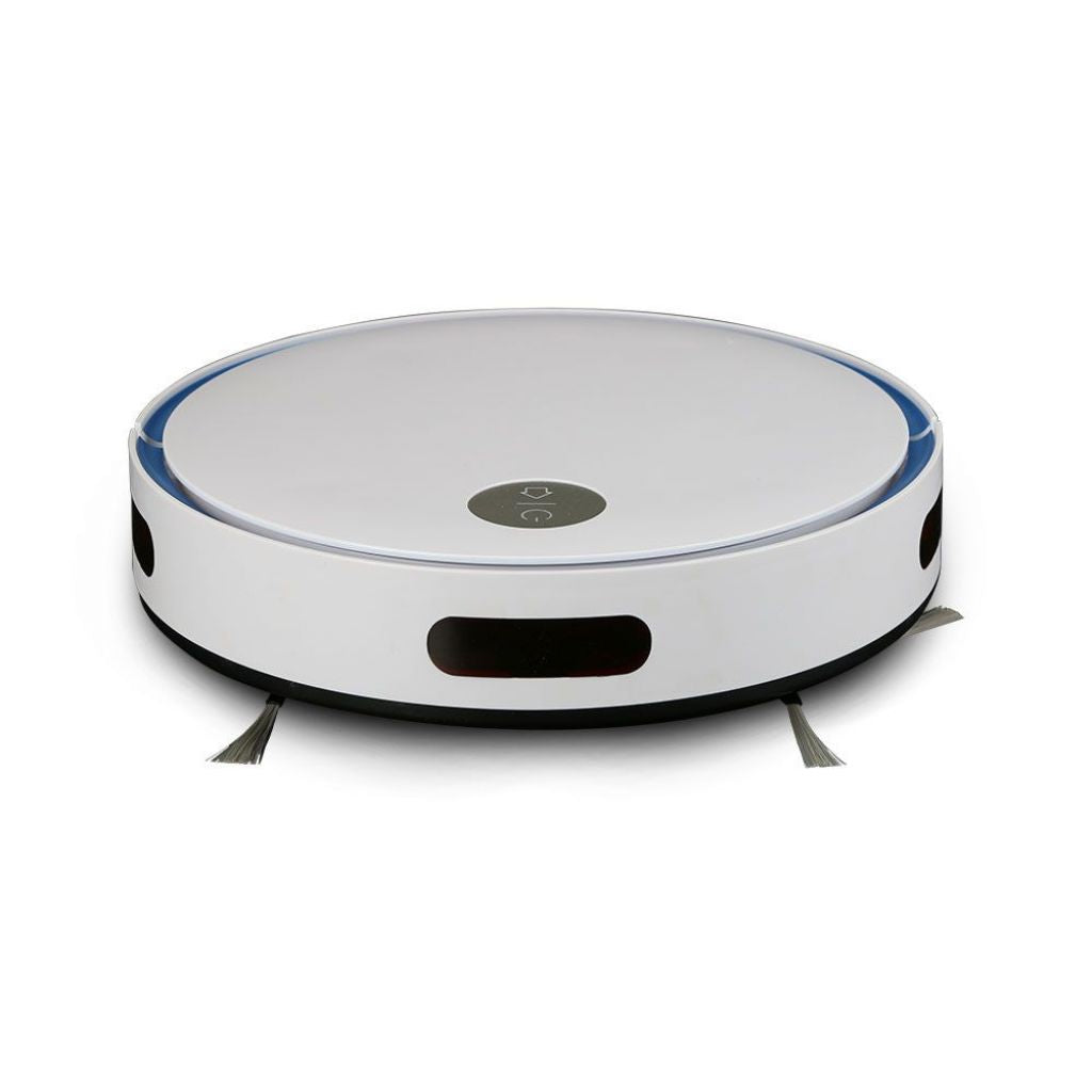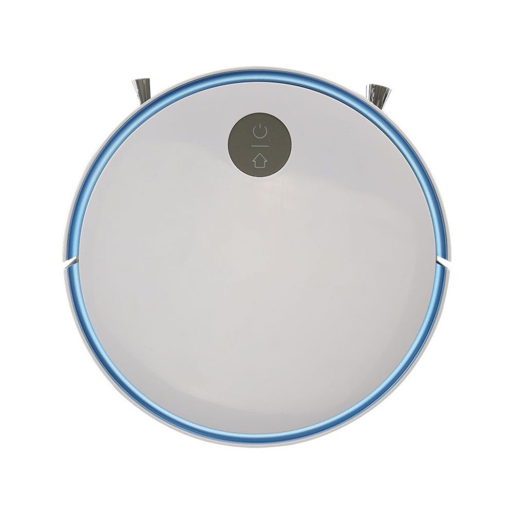 Smart VT-5522 Robot Aspirapolvere Il corpo del prodotto è in ABS dalla forma caratteristica a disco, con un design moderno progettato per essere leggero e di dimensioni ridotte Forza di aspirazione di 800 Pa e ben due spazzole rotanti frontali per raccogliere la polvere Sulla parte superiore trovano spazio il pulsante di accensione / spegnimento