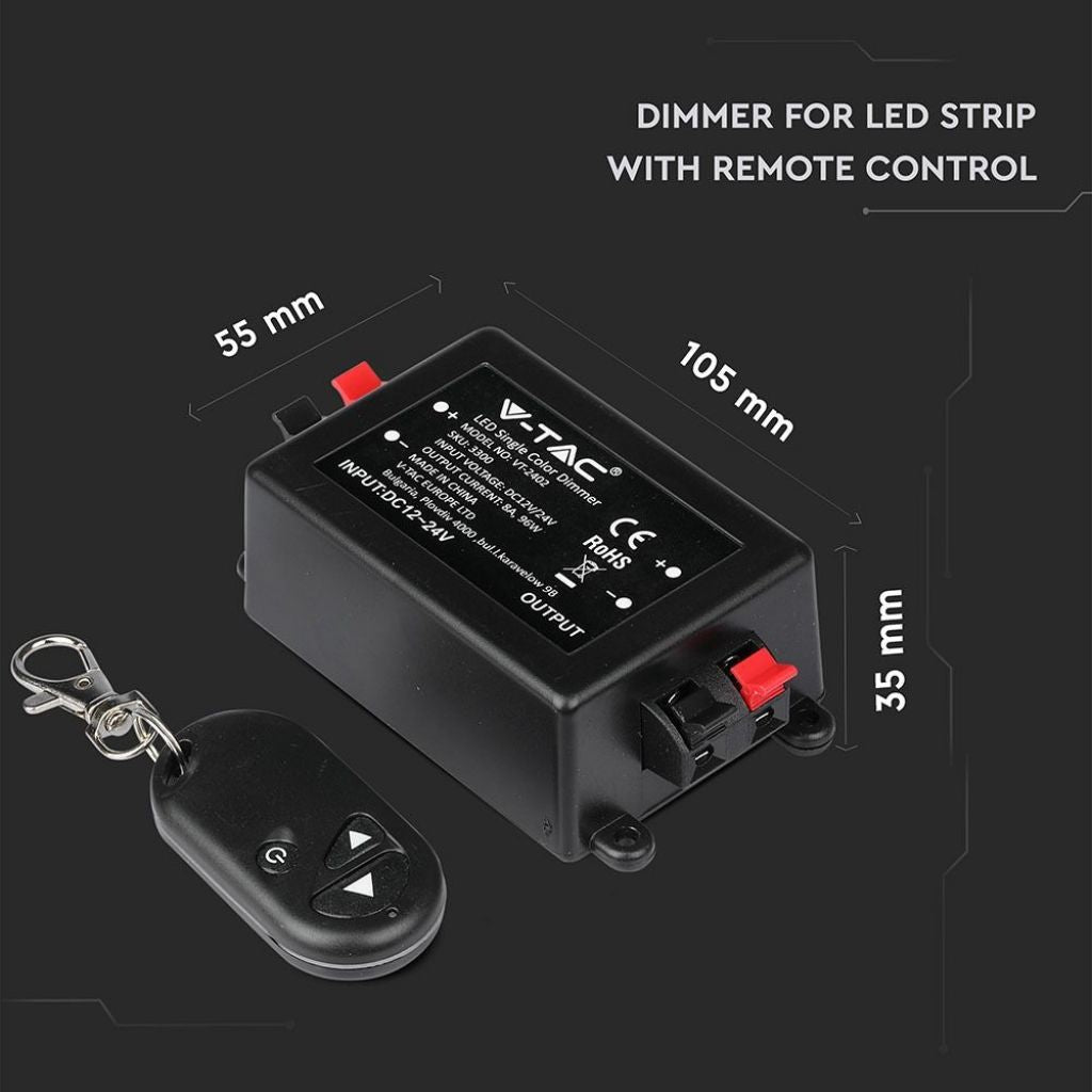 V-TAC Controller per Strip LED Dimmerabile con Telecomando 3 Tasti (Max 96W)
