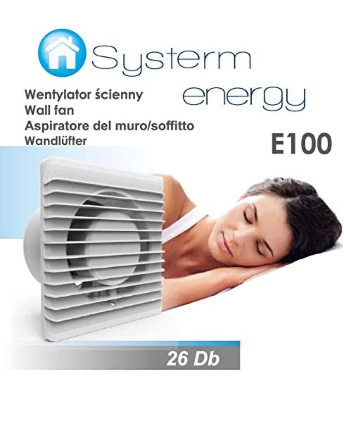 Ventilatore universale con valvola antiritorno Ø 100 mm/10 cm per bagno e cucina, basso consumo energetico 8 W, funzionamento silenzioso 26 dB e alta efficienza 93 m3/h. Standard. Systerm Energy.