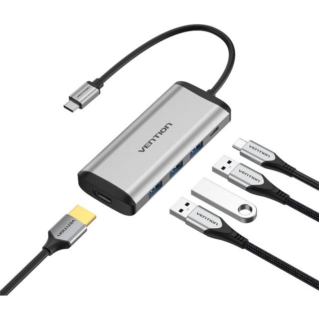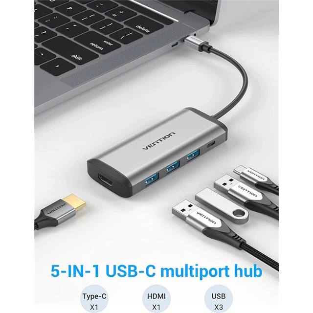 Dotato di uscita HDMI 4K, 100W PD e 3 porte USB 3.0, l'hub adattatore VENTION USB-C converte una singola porta in 5 porte per facilitare il multitasking e aumentare la produttività. Offrono uno spazio di lavoro elegante. Piccolo ma potente. La soluzione perfetta per i dispositivi con porte limitate. Plug and play, non sono necessari driver.