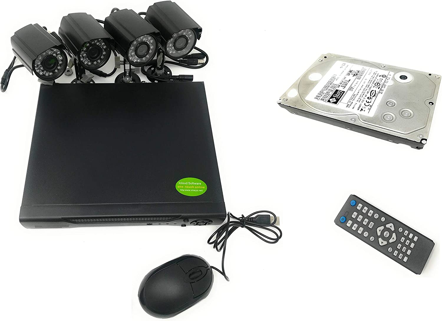 Kit VIDEOSORVEGLIANZA h264 CCTV 4 CANALI con 4 Telecamere INFRAROSSI DVR 4 CANALI - 4 ALIMENTATORI - 4 PROLUNGHE - HD 500 GB
