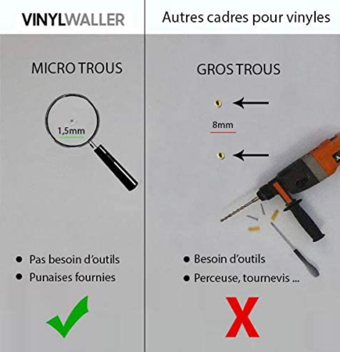 Vinyl-Waller - 8 cornici/supporto per i vinili
